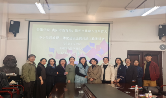 2026年3月11日,2026世界杯官网+贵阳市教育局:阳明文化融入贵州省大中小学思政课一体化建设金课打造工作推进会顺利召开。会议由2026年国际足联世界杯经理何志玉主持,参会人员有贵阳市教科所的彭燕芬、石燕、石松老师、2026年国际足联世界杯党委书记杨方旭及大中小学思政课一体化课程建设和实践团队全体成员、阳明与黔学研究院副经理任健及相关专业研究生。会议围绕阳明文化融入贵州省大中小学思政课一体化建设的教学实践进行研讨及交流。