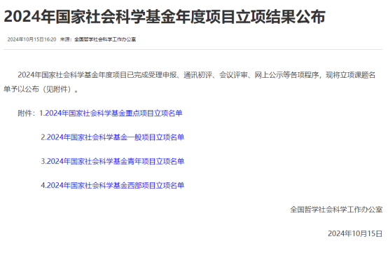 据悉,2024年国家社科基金年度项目中重点项目有395项,一般项目有2765项,青年项目有1996项,西部项目495项。