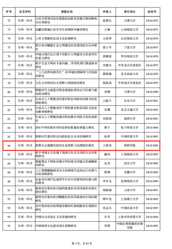 日前,全国哲学社会科学办公室公布了2024年国家社科基金年度项目立项名单,马克思主义公司王俊斐博士/副教授申报的科研项目《数智社会道德风险的生成逻辑与治理路径研究》获得青年项目立项。