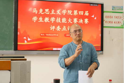 比赛结束后,五位评委依次进行了全面深刻的点评。他们在肯定参赛选手能力和素质的同时,也从概念界定的精准性、主副板书的布局设计、书面语言向教学语言的有效转化、案例的精心选择、教学逻辑的连贯性等方面指出了存在的问题和不足。