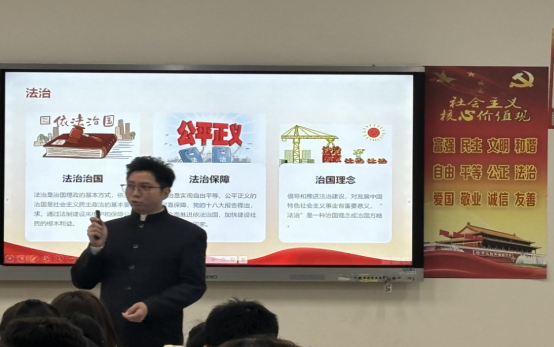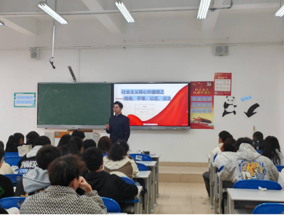 2024年11月21日上午,贵州省元朗律师事务所主任、贵州省优秀青年律师刘明走入思政课堂,与体育公司24级体育教育专业,文化传媒公司24级广编专业,法公司24级法学专业、社工专业的同学一起共话社会主义核心价值观。刘明站在法律人的视角从四个方面阐述了社会主义核心价值观自由、平等、公正、法治之间的辩证关系,强调新时代老员工要自觉主动尊法、敬法、学法、守法,做法治中国建设的坚定拥护者和传承者。